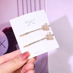 Pinza de pelo de una palabra con diamantes de imitación y diamantes de imitación, accesorio de pico de pato lateral Simple, aleación para fiestas de celebridades en Internet