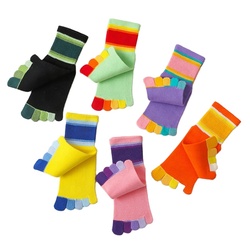100% calcetines de punto de rayas de arcoíris de algodón para niños, transpirables, antideslizantes, desechables, con punta dividida, moda de verano