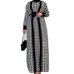 Conjunto de dos piezas para mujer, chaqueta de manga larga a cuadros de Mil Pájaros, vestido Abaya, moda turca de poliéster para verano e invierno para el medio
