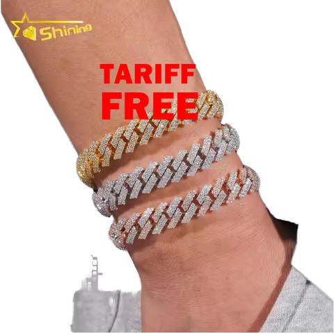 Hochwertige 12mm Moissan ite Diamond 2Row Hip Hop Armband Silber Iced Cuban Link Certified Herren Armreifen