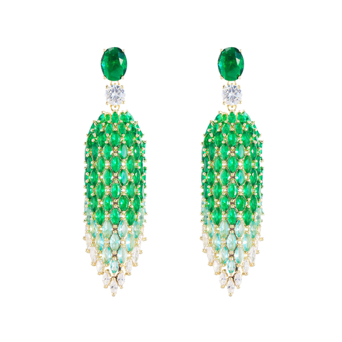 Edle Marquise Cut grüne Zirkonia Stein Tropfen Ohrringe Long Dangle Party Wear für Frauen Indisches Kostüm Hochzeits schmuck